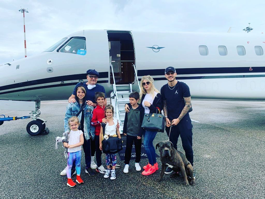 En un avión privado, Wanda, su marido, el papá de Mauro Icardi, sus cinco hijos, Valentino, Francesca, Benedicto, Isabella, Constantino y los perros llegaron a París para instalarse en una lujosa casa.