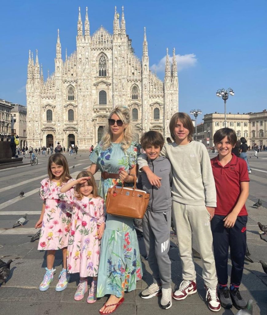 Wanda Nara salió de paseo por las calles de Milán junto a sus cinco hijos en un día soleado y aprovechó el clima para lucir un atuendo primaveral.