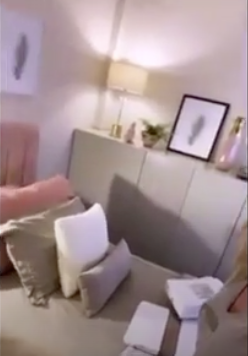 En sus stories de Instagram, Yanina mostró parte de los arreglos de la habitación "estilo romántico" de Lola, donde se pudo observar una pared decorada con papel vinílico en tonos lila y blanco, y un televisor plasma.