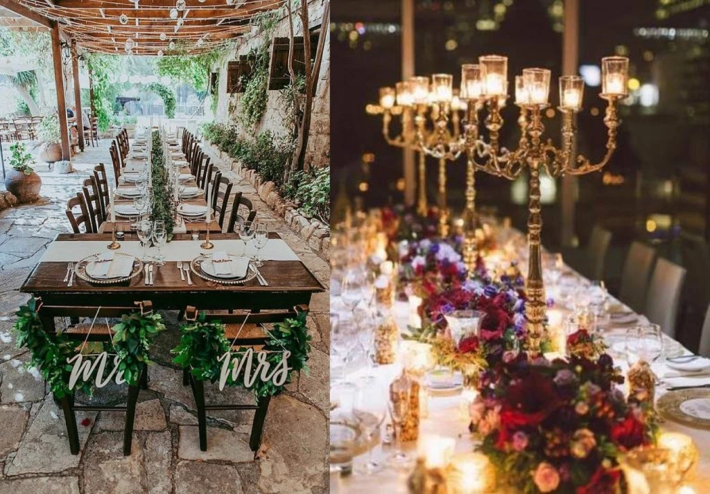 Y las velas también aportan su encanto, generando una luz cálida en la fiesta. Para centros de mesa, tenés varios diseño para elegir: rústicos, románticos, simples, exagerados, más y menos coloridos.