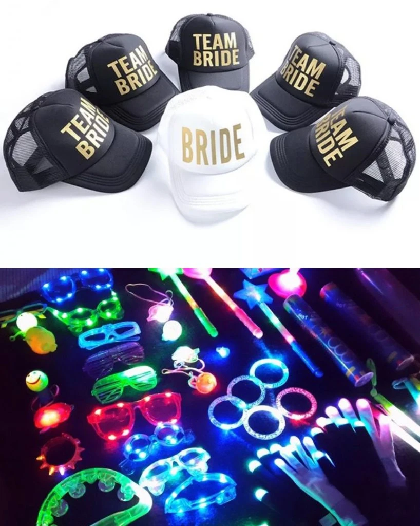 Pueden elegir algo distinto y llamativo para la pareja de novios, una capa de led, unos tiradores led, unas buenas camperas intervenidas o coronas, gorras de capitán. También metan accesorios flúo y de led que siempre suman. El cotillón es una de las grandes sorpresas en la noche. Pueden comprar sentadas frente a la compu, online, o caminando por el Once. Empezás a caminar y entrar a las tiendas y ¡te perdés!