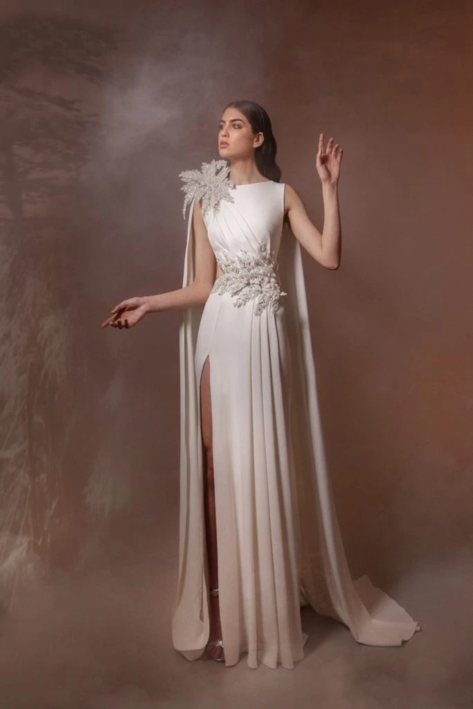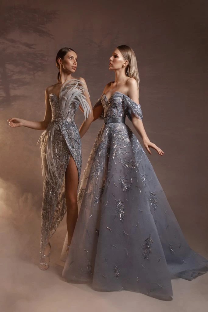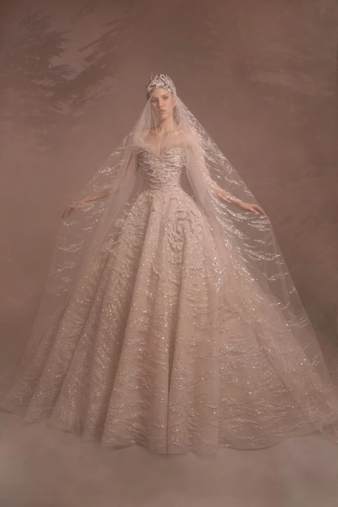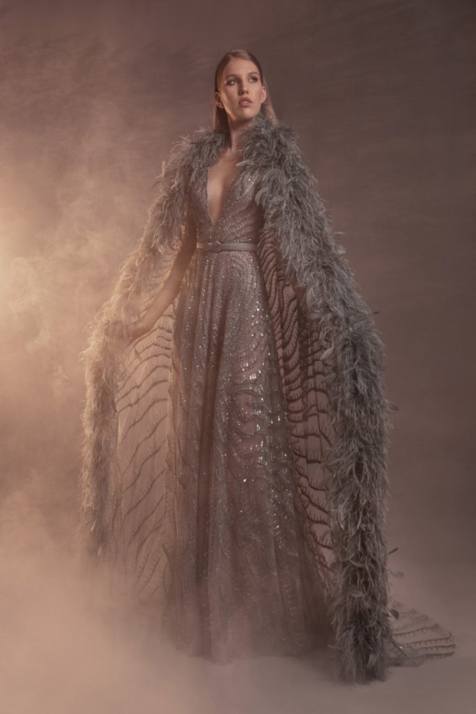 La colección se refleja en dos símbolos: la mujer en la que se representan los diseños y la madera de cedro libanés, utilizada en forma de anillos bordados y ramas de árboles, que se bordaron sobre vestidos de tul de seda y gasa con mangas estilo capa y plumas de avestruz.